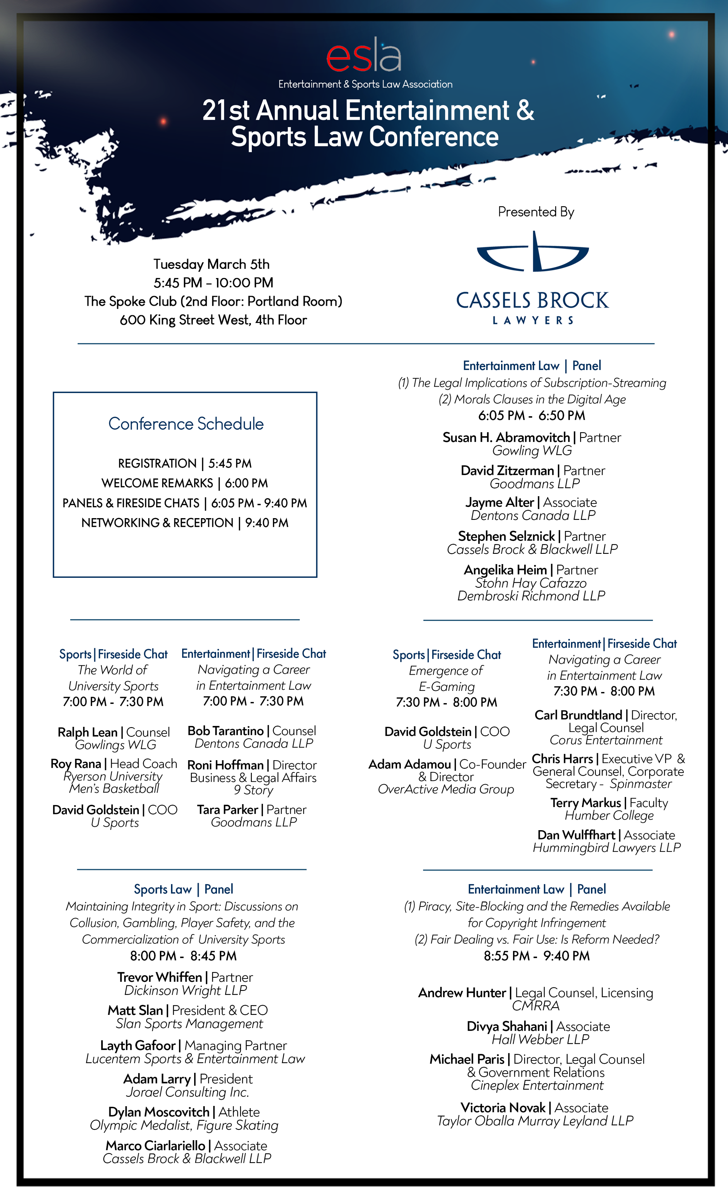 2019 Entertainment & Sport Conference Programme Posted on 28 Feb 20197 Oct 2019 by ESLA in Uncategorized Related