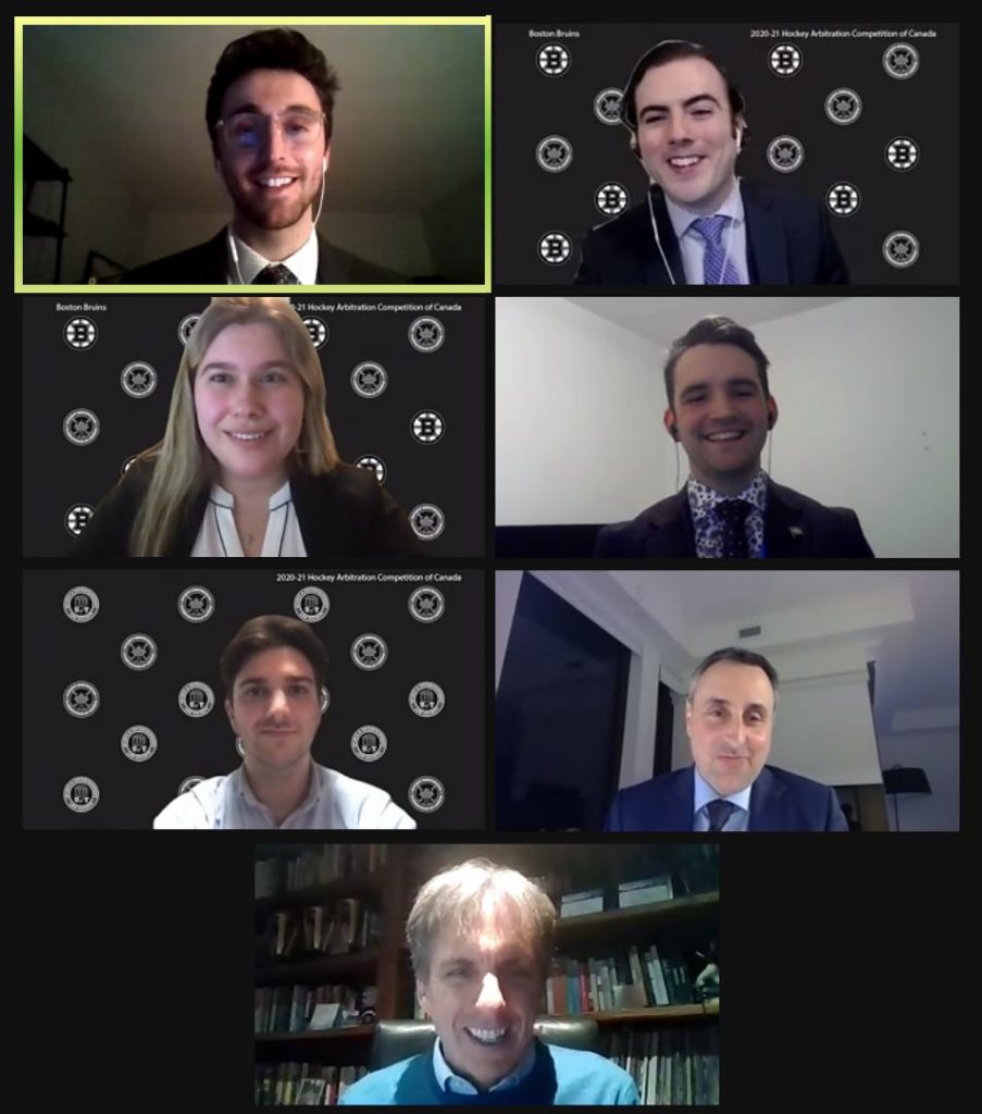 On March 13th, Osgoode Hall sent two teams (virtually) to the annual Hockey Arbitration Competition of Canada, hosted by the University of Toronto. This year’s Osgoode teams were executive members from the Osgoode Entertainment & Sports Law Association, Jordan Kazan Baigrie & Jeremy Wright along with Nolan Cattell & Vaughan Rawes.